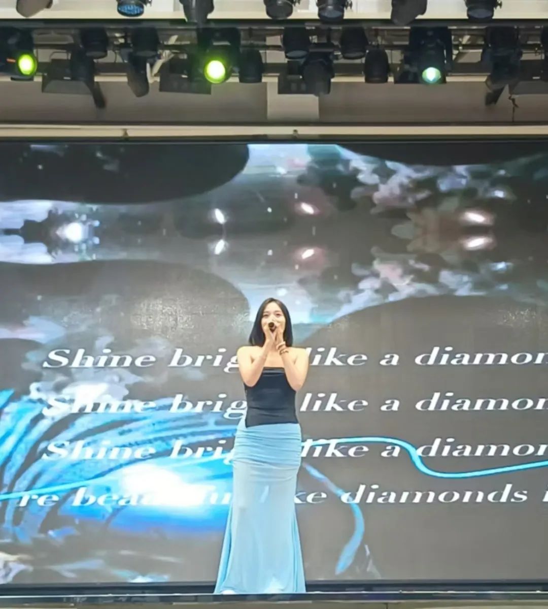 郭万悦带来了歌曲《diamonds》,旋律优美动听,节奏平稳流畅,歌词以钻石为主题,将爱情人生与钻石的闪耀和坚韧相类比,传达出积极向上的情感,也表达着对新生们在困难中依然能够闪耀光芒的期许。