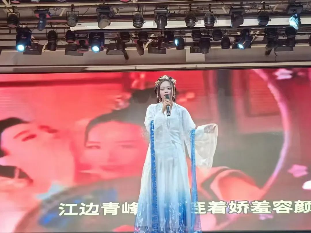 2024级管理专业的肖瑶同学为大家带来歌曲《敢为天下先》,极具穿透力和感染力的嗓音让观众感受到歌曲所传达出的力量与情感,一种不畏艰难险阻,敢于突破常规的人生哲理,非常有励志意义。
