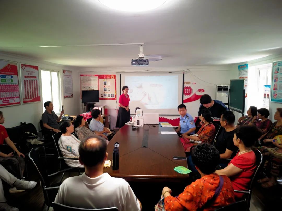 8月12日下午,团队的六位同学走进社区开展党日活动,结合社区党员普遍疑惑,实践团成员王新博为居民们进行了有效垃圾分类的讲解。结合公共卫生专业特点及所学,实践团成员王源荣为大家进行了高血压预防的科普与讲解,鼓励老年人积极合理调整饮食结构、定期体检与测量血压、保持良好生活状态;实践团成员王珏为大家进行了脑血管疾病的科普,让大家更早的注意脑血管疾病的症状,及时就医。同时,实践团成员杜鹏吉向村民发放由球友会球友会制作的“春夏传染病防护指南宣传册”,向村民详细讲解如何预防春夏传染病,帮助村民提升对春夏传染病的预防意识,树立健康生活理念。随后,实践团成员谭莉、常竟文向大家讲解了八段锦“手指操”,希望社区的老人们能在任何时间、任何地点轻松养生,保持健康。