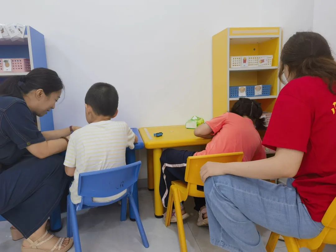 在志愿活动正式开始之前,各位志愿者积极查阅资料了解自闭症相关科普知识,纷纷表达了对志愿活动的期待,希望能通过自己的爱心来帮助和温暖这些“星星的孩子”。8月2日下午,队内的五位同学在辅导员边晓飞老师的带领下化身“影子老师”,与小朋友们度过了一段难忘的时光。在康复中心老师的带领下,球友会的师生志愿者们来到了不同的班级,辅助小朋友们完成课堂任务。活动过程中,志愿者们细心、耐心地与小朋友们交流,并且一对一的帮助小朋友们进行思维训练、感知训练等,在这个过程中,大家与小朋友们逐渐地熟悉起来。在课间与老师、家长交流的过程中了解到,星星的孩子在孕期通常无法被诊断出来,且最好的干预结果是各项能力接近正常人。家长们从来没有放弃过给孩子治疗,也由衷地感激社会上越来越多的组织与志愿者看到了他们这个特殊的群体,也有越来越多的专业人员为他们提供帮助。在活动结束后,师生志愿者与小朋友们拥抱告别,球友会也与小海豚自闭症康复中心建立了长期联系,未来,球友会越来越多的同学们会用自己的爱心与所学的专业医疗知识为老师们、孩子们提供帮助。