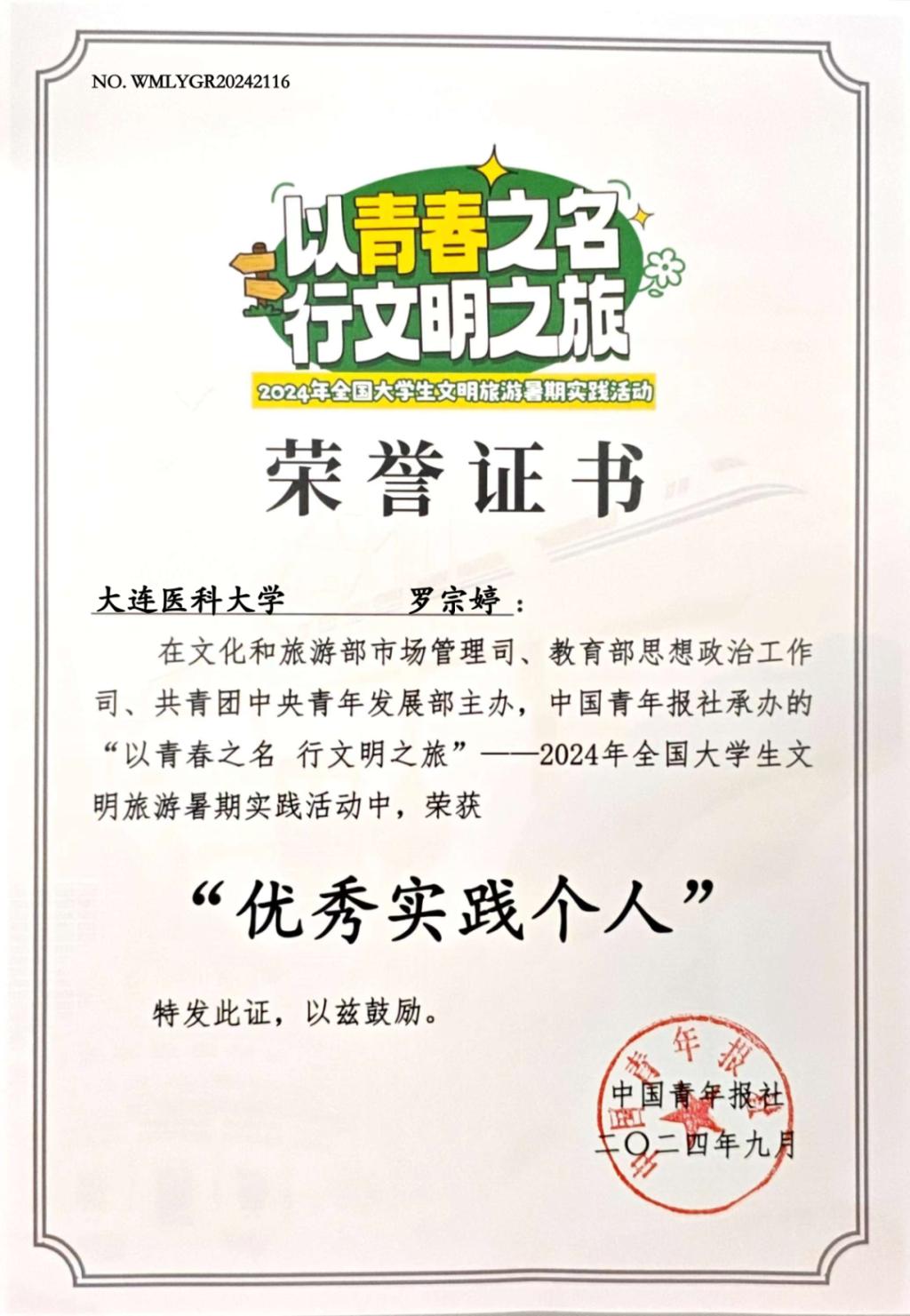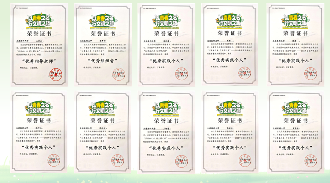 球友会球友会多名师生在“以青春之名 行文明之旅”——2024年全国大员工文明旅游暑期实践活动中荣获“优秀指导老师”、“优秀组织者”、“优秀实践个人”称号。