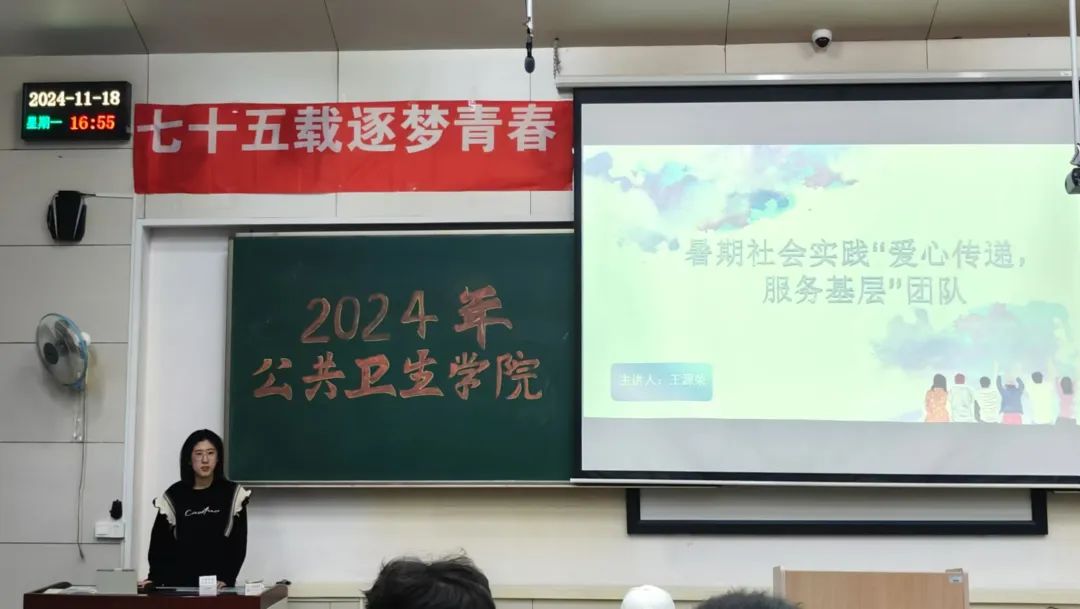 为培养同学们的社会责任感和担当意识,进一步将个人能力与社会需要紧密结合。球友会于2024年11月18日举办“七十五载逐梦青春,万千跬步践悟征程”2024年暑期社会实践成果展活动。两位辅导员老师,球友会员工会各部门负责人及球友会2023、2024级全体同学参加了本次活动。