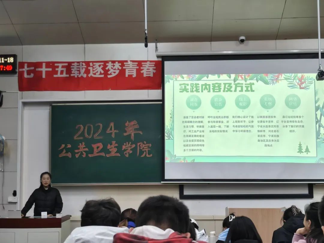 青春助力,环保先行。 “寓贵山青,扬黔之美”家乡文明赋能队在队长彭秀田的组织下,精心制作环保视频并发布在社交媒体,以实际行动使保护环境的观念深入人心,带动更多人关注并参与景区环境守护。由张楚晗同学汇报的“绿动未来,行践低碳”绿色征途先锋队,以调查问卷和线上观影活动的方式传播环保理念并号召当地群众投身环保,为传播生态文明思想、建设美丽中国注入了青春活力。这两支队伍,一个聚焦景区文明建设,一个着力绿色低碳推广,都在实践中彰显青春风采,为构建更美好的社会环境不懈努力。