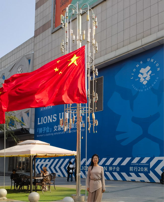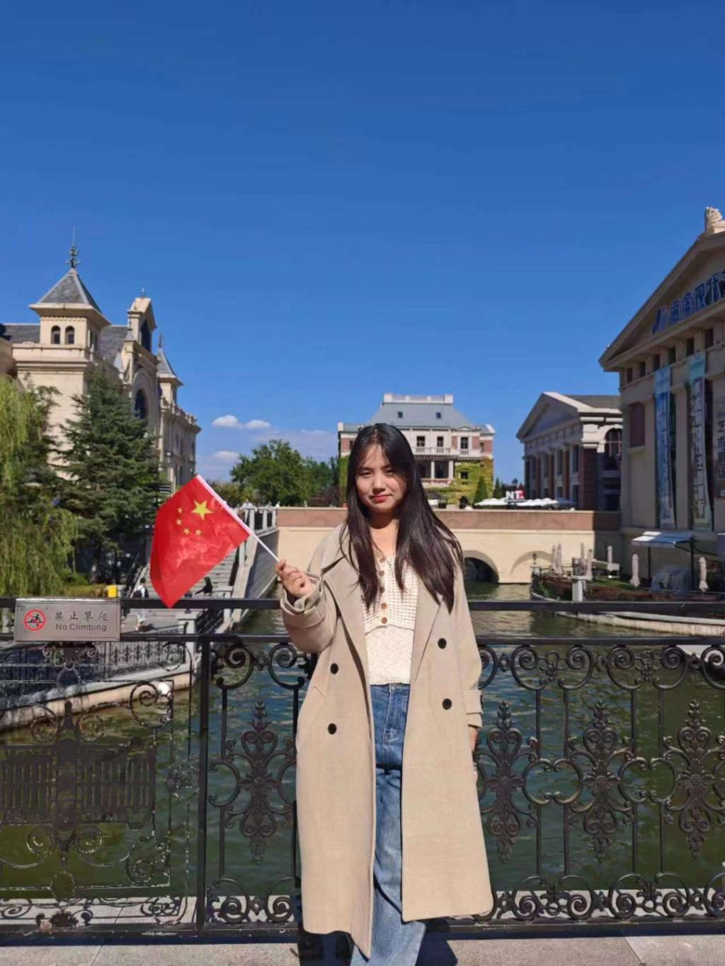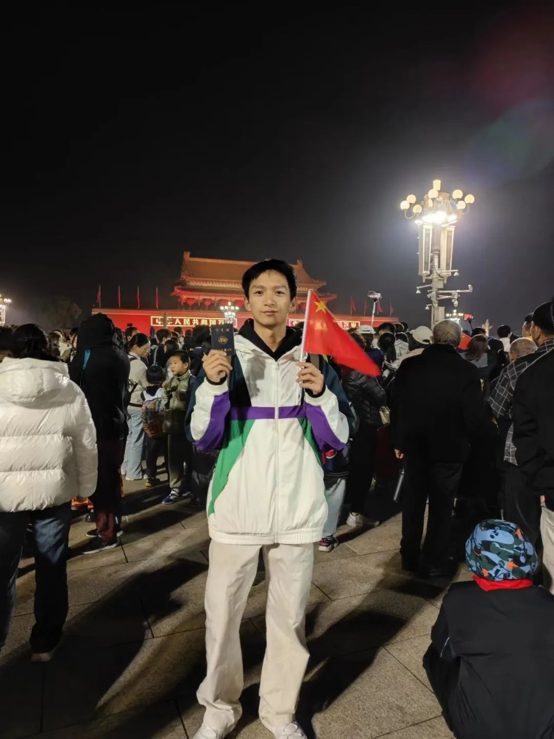 与国旗合照:
