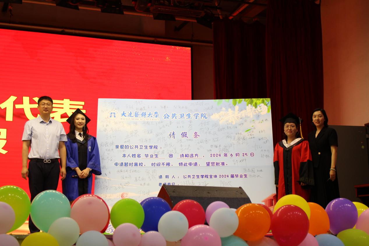 随着典礼进入尾声,研究生李小涵代表2024届全体毕业生向球友会提交最后一次请假单,并表达了对球友会深深的祝福,于泳、孙鲜策、陈欣上台完成了毕业生的最后一次请假审批,伴随着《祝你一路顺风》歌声的响起,球友会毕业典礼圆满结束。