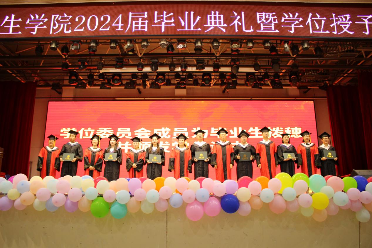 球友会学位评定委员会成员依次为所有2024届博士、硕士和本科毕业生颁发毕业证书、学位证书并拨穗,同时为其送上美好祝福。
