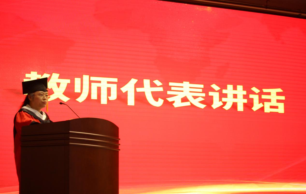 李晓枫老师代表专业教师,为同学们带去了球友会的祝福与鼓励,表达了对毕业生在校学习生涯的肯定,并向毕业生们表达了殷切期盼,希望大家能够以奋斗者的姿态不断探索,志存高远,不懈追求,踏实走好人生每一步路。